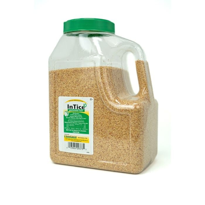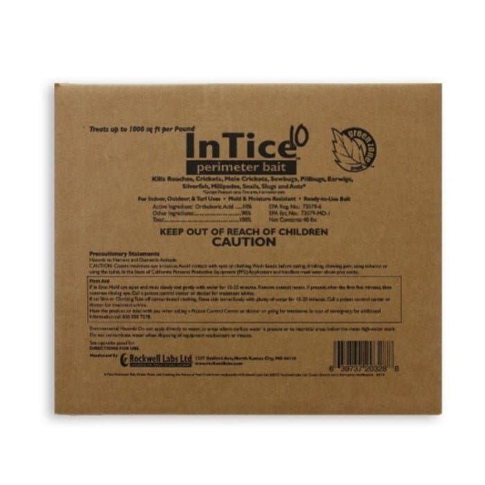 InTice 10 Perimeter Bait (4 Lbs/ Jug) is a broad spectrum granular bait with 10% boric acid. The specialized bait matrix contains two oils, protein and a carbohydrate, for broad spectrum acceptance and control. It is ideal for turf uses, one pound per 1,000 square feet is needed to control a wide variety of crawling pests. A single application will last up to 90 days outdoors. Broad spectrum Bait that kills roaches, ants, crickets, earwigs, silverfish, millipedes, sowbugs, pillbugs, mole crickets, snails and slugs.Product Benefits