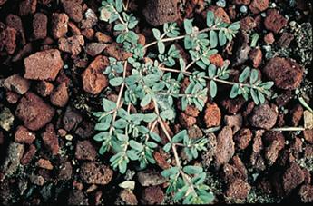 Spotted spurge is a summer annual. While similar to prostate spurge, there are several subtle differences in the two varieties. Spotted spurge has a more erect growth habit than prostrate spurge. They have similar leaves, which are small and oblong shaped with an irregular red to purple spot, but the leaf of spotted spurge is slightly larger than that of prostrate spurge. Both spurges will have leaves that grow opposite on the stem, but spotted spurge has fewer leaves per stem.