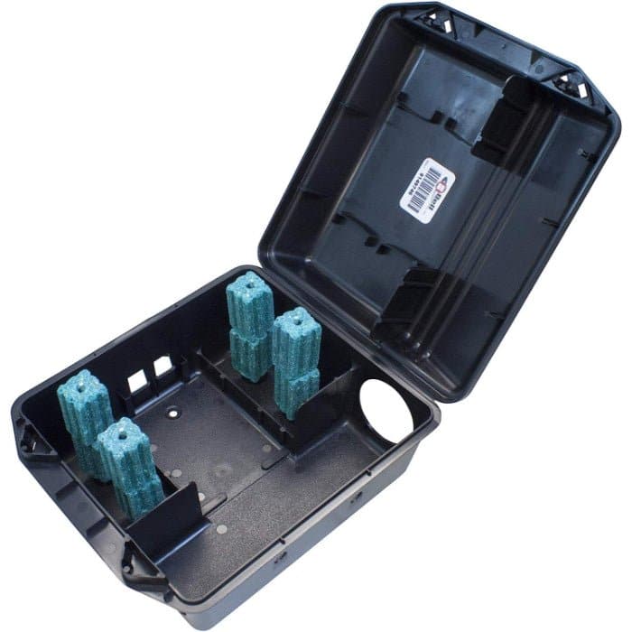 PROTECTA Sidekick is an economical way to upgrade from using non-tamper-resistant mouse bait stations to the security and high quality of tamper-resistance. It locks when closed and unlocks with Bell's two-prong PROTECTA key. Easy-to-use Sidekick opens to the side for fast, convenient servicing, even when the station is secured. Its interior corners are rounded for easy cleaning, and a built-in card slot holds the PROTECTA service card. Sidekick measures 9 1/2" x 8 3/4" with a height of 4 1/2" (approx. 241mm x 222mm x 114mm), ideal for fitting into tight baiting locations. Yet, Sidekick can hold up to two pounds or almost 1 kg of bait (not inlcuded). Restrictions: Only 1 key per 6 stations will be shipped, please contact us directly if you would like additional stations at an additional chargeProduct Benefits